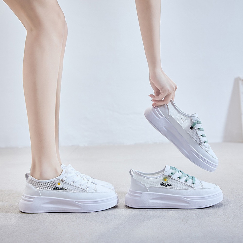 Spring And Summer New White Shoes Women Breathable Leather Thick-Soled Casual Shoes Sports Running Shoes Women