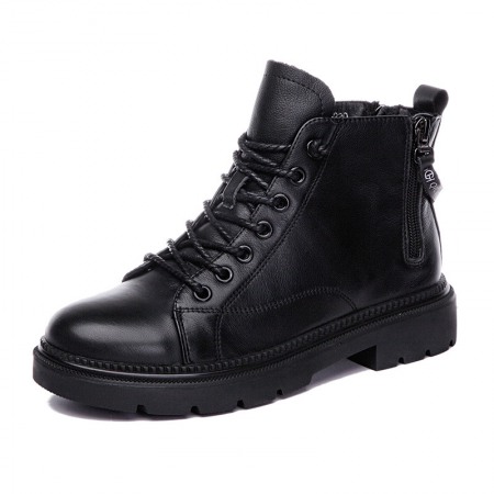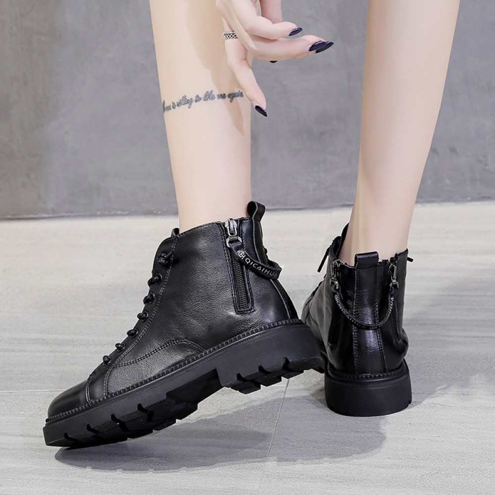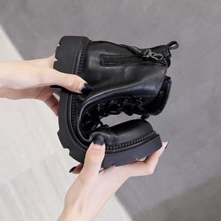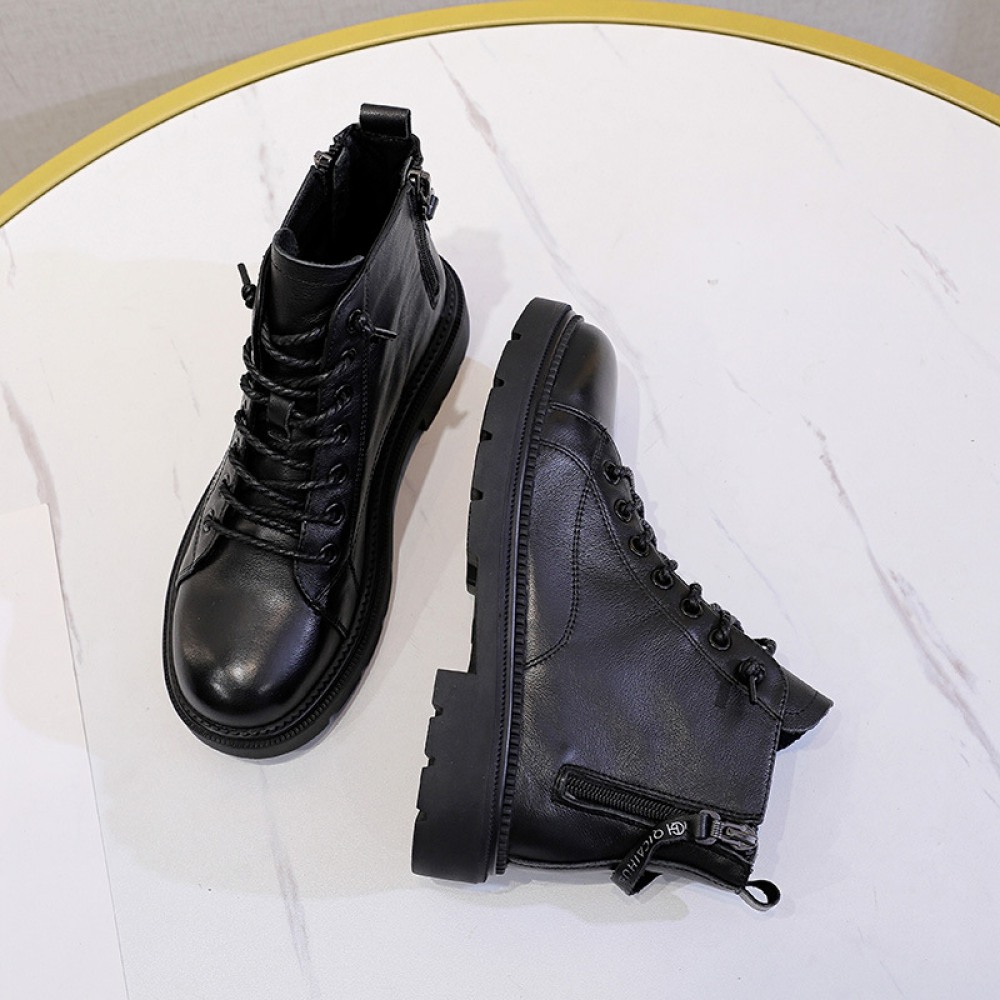 Martin Boots Women's Autumn New Thick-Soled Leather Boots Round Toe Thin Boots Mid-Tube Womens