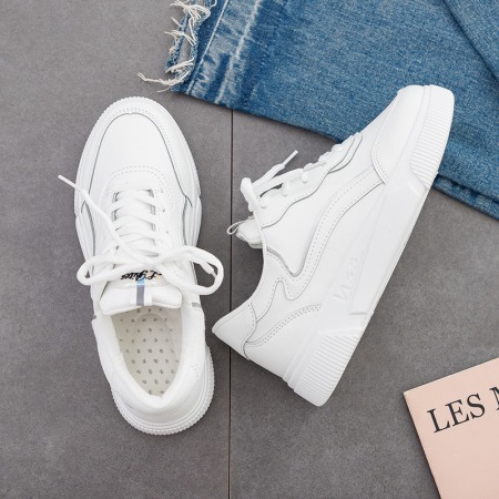 White Shoes Female New Breathable Student Board Shoes Female Flat-Bottom Lace-Up Casual Shoes